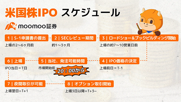 また、米国IPOは日本に比べると、承認から上場までのスケジュールがとても短いのが特徴です。上場の情報が出てから口座開設していては乗り遅れる可能性があるので、興味がある方は米国株取引ができる証券口座を開設しておきましょう!