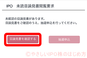 12.抽選後に提出された目論見書を確認するため、『目論見書を確認する』をタップします。